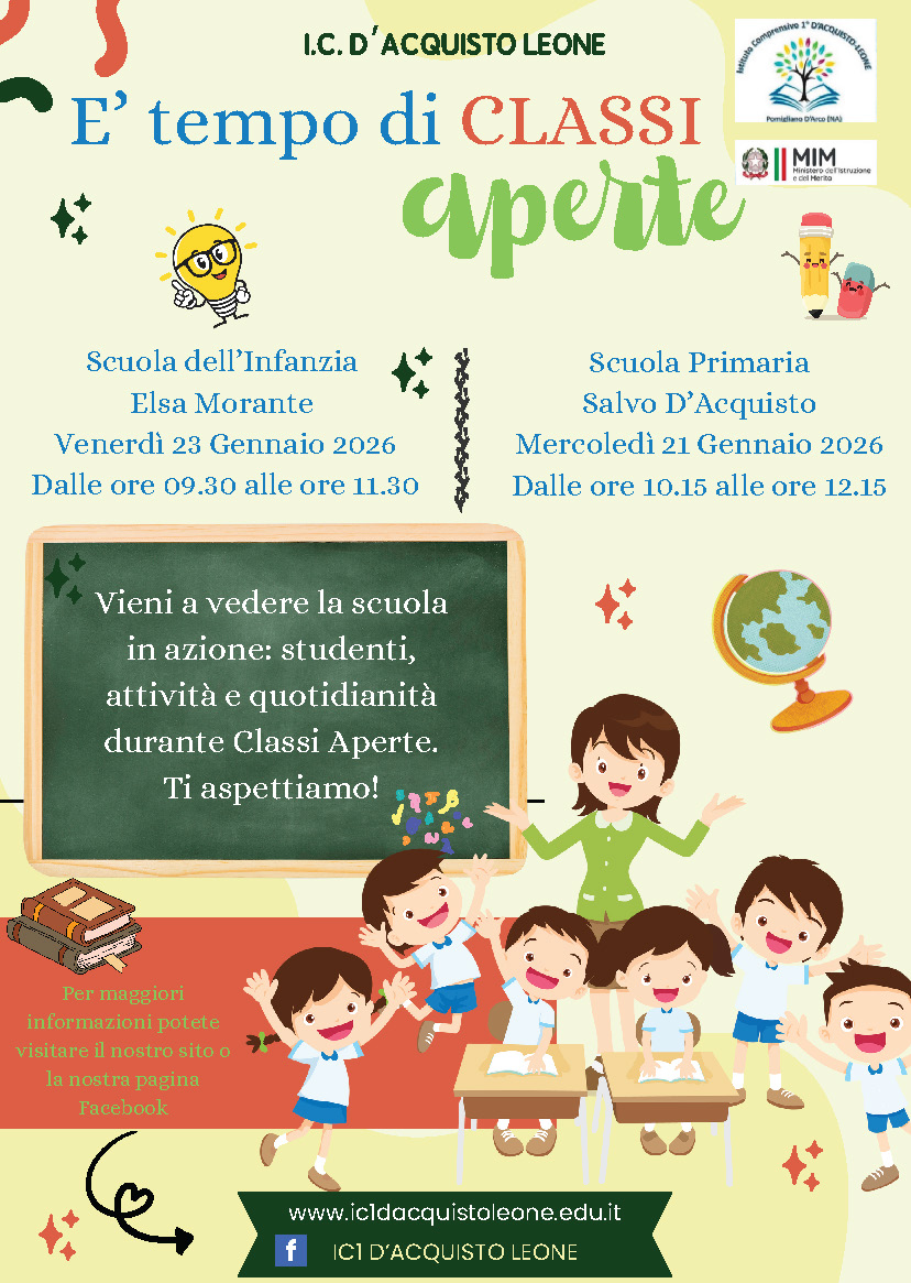 Il nostro Istituto organizza l’iniziativa “Classi Aperte”, un’occasione dedicata alle famiglie per osservare da vicino la scuola in attività, conoscere ambienti, proposte didattiche e quotidianità scolastica.